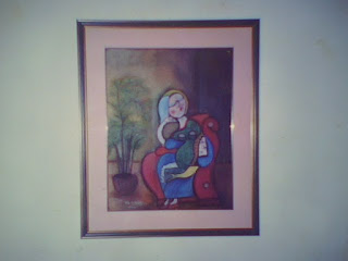 Este Reloj estaba hacia tiempo en el Baúl de los recuerdos,buscando retazos de telas es que apareció ,como estoy en mi momento de inspiración y el reloj se veia un poco soso,le di un poco de pintura al óleo y por último barniz.